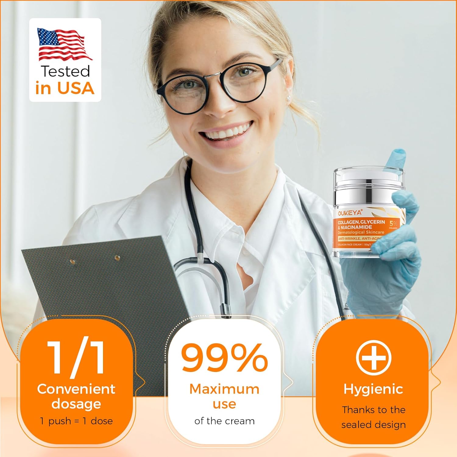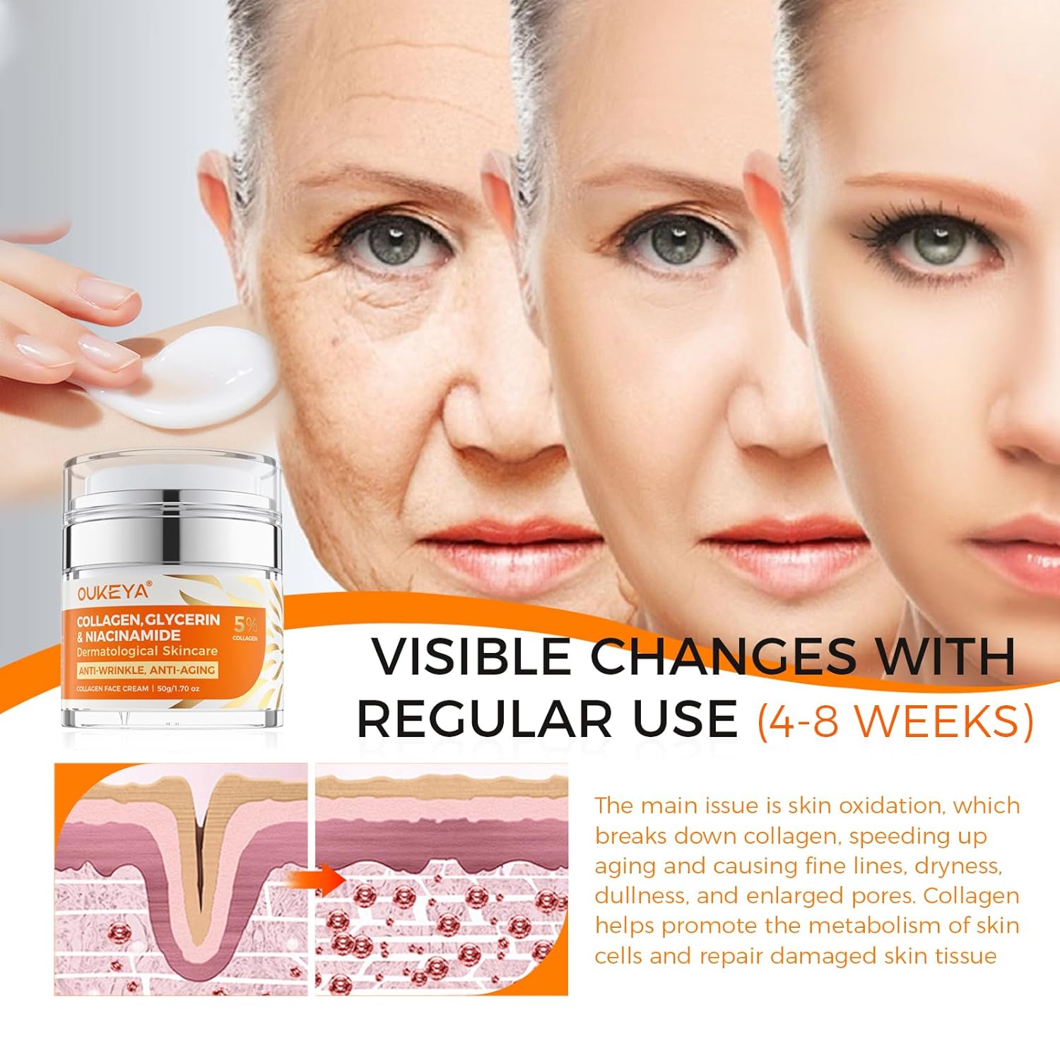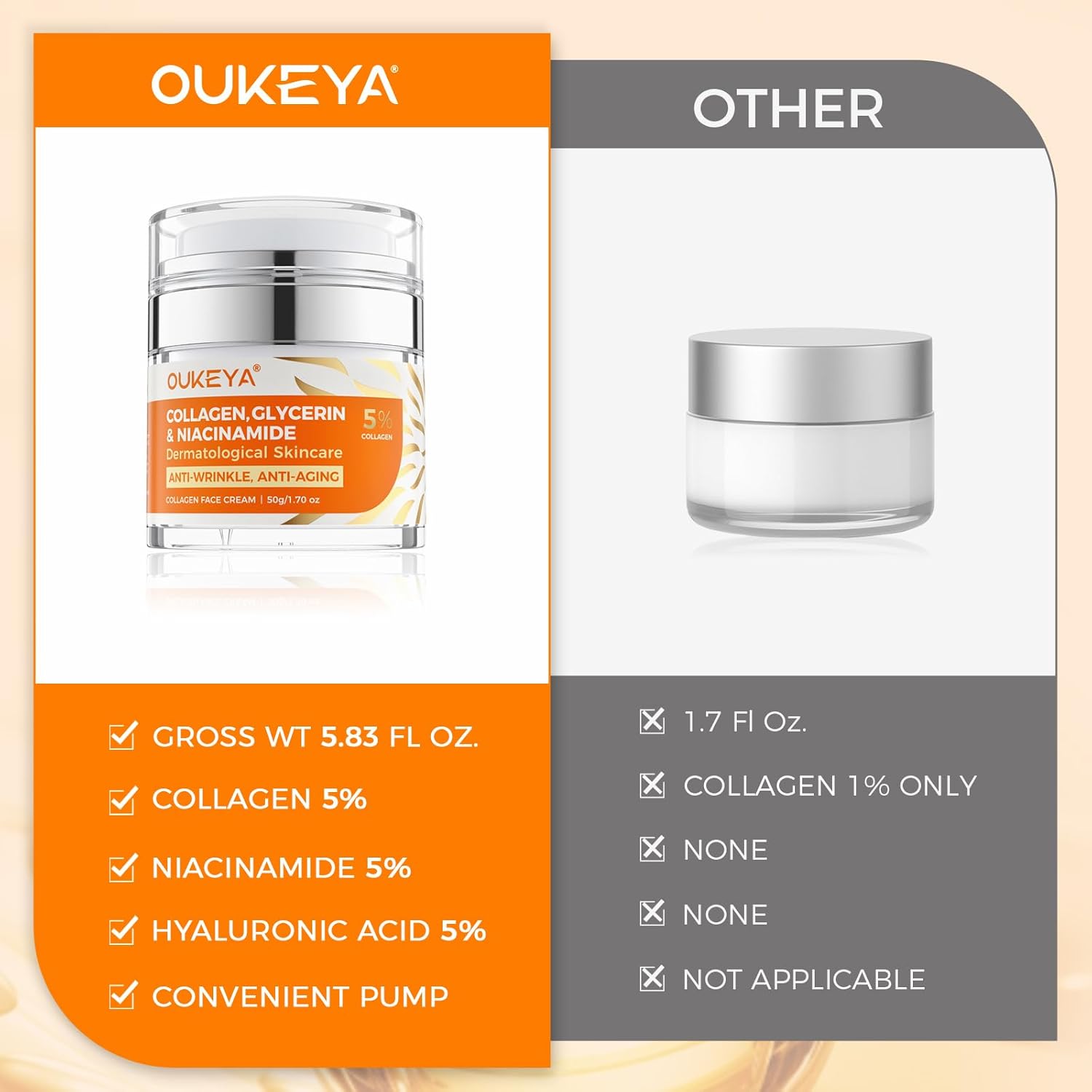 OUKEYA Collagen, Retinol & Hyaluronic Acid Cream – Anti-Aging Face Moisturizer for Face, Neck & Décolleté, Daily Moisturizer Face Cream – 1.7 fl.oz with 5% Hyaluronic Acid Niacinamide