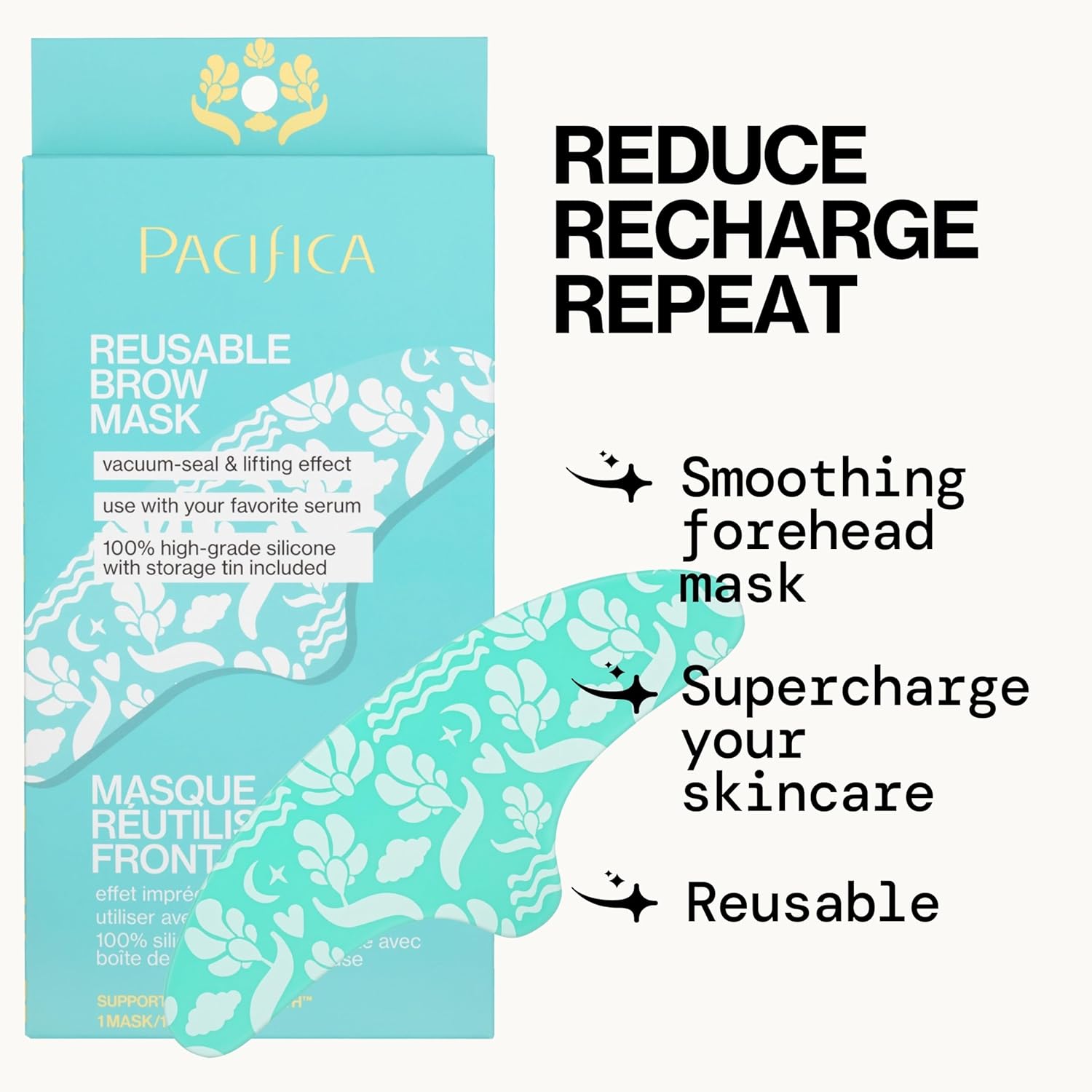 Reusable & Eco-Friendly: Unlike single-use sheet masks or adhesive patches, Pacifica’s brow mask is washable and reusable many times over. With proper care (a gentle wash with mild soap and air dry after each use), this durable silicone patch can be used night after night – up to 10-15 uses or more, depending on care. This means you save money and greatly reduce waste compared to disposable wrinkle patches. The mask comes with a convenient storage tin to keep it clean and protected between uses. By choosing a reusable mask, you’re making a sustainable choice for your skincare routine.