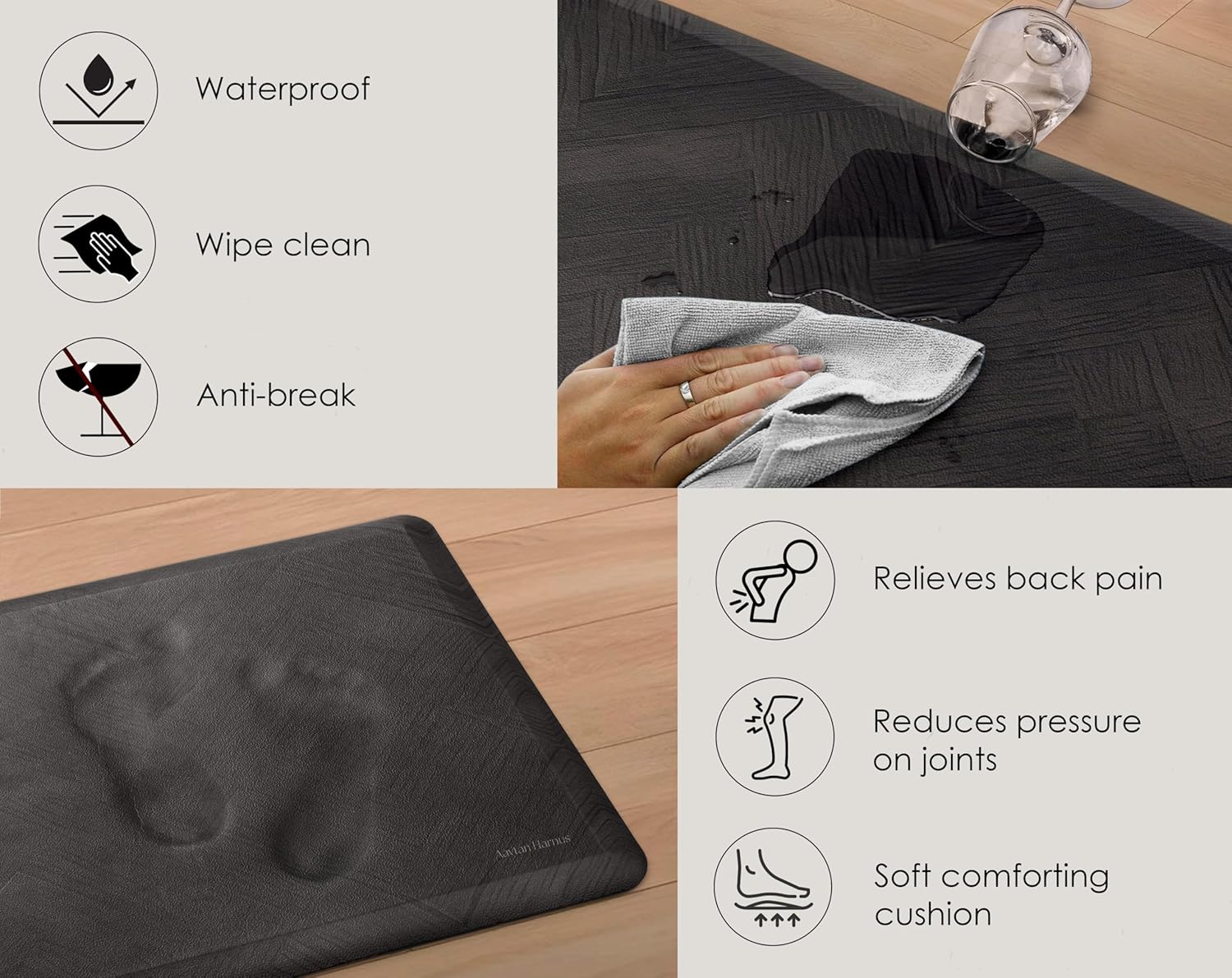 Upgrade your comfort, protect your joints, and add a touch of elegance to your home or office with the Aavtan Harnus Premium Anti-Fatigue Mat today!