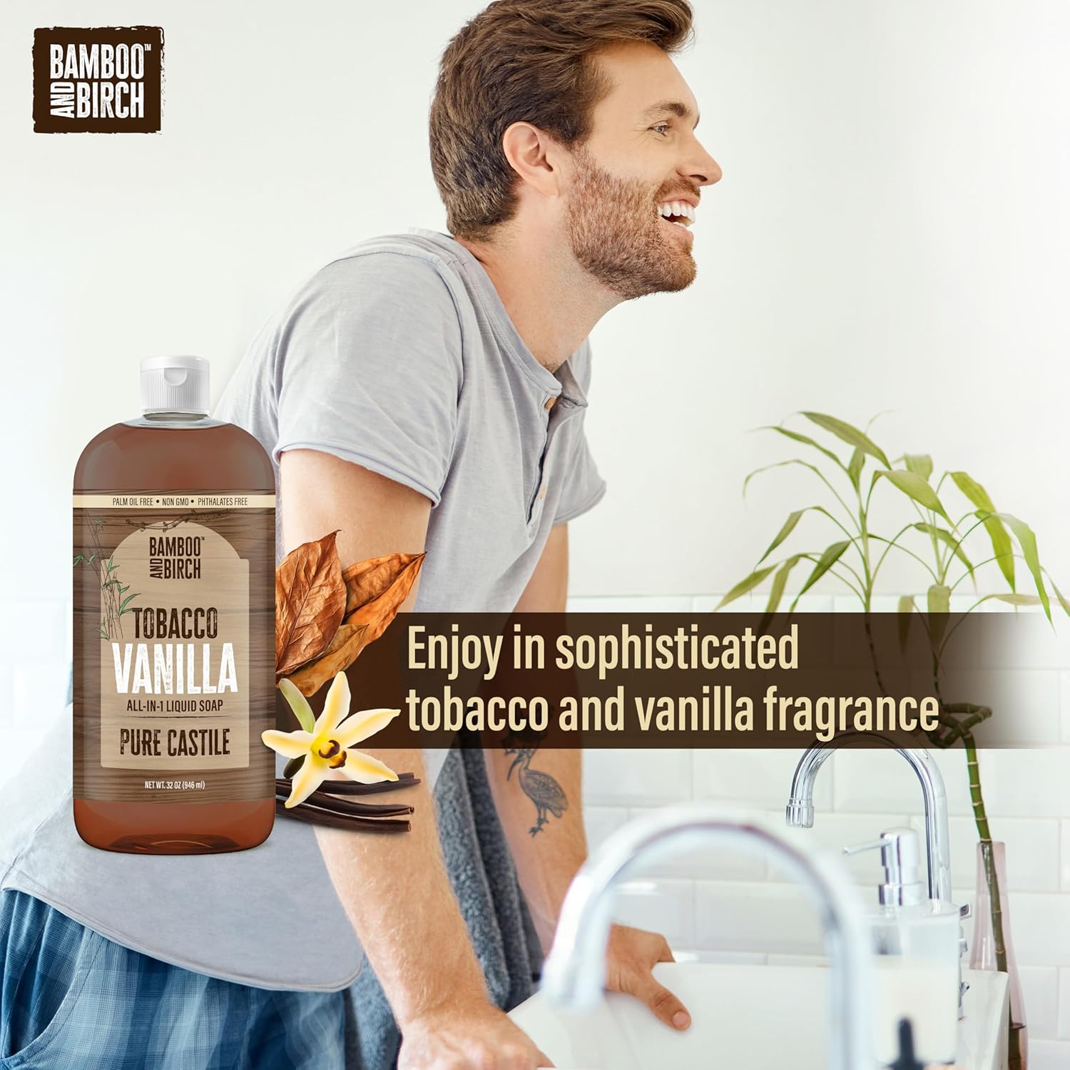 Pure Castile Soap Liquid Organic, Certified Palm Oil Free Natural Soap, Tobacco Vanilla, 32 oz