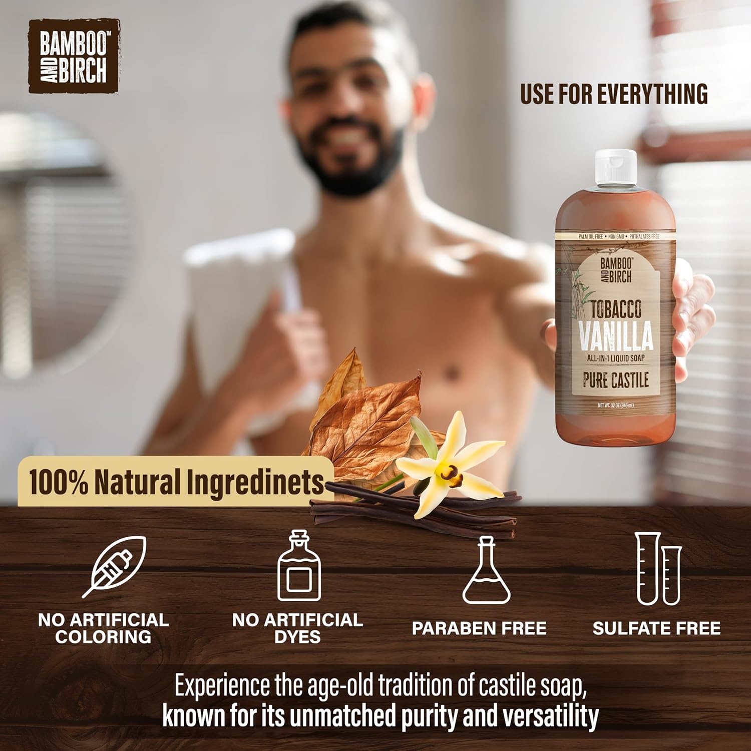 100% Natural Ingredients: Our liquid soap is made from the finest natural ingredients, sourced responsibly to ensure a gentle, yet effective, clean. Discover the secret to pure, natural, & luxurious cleansing with Bamboo & Birch castile soap liquid.