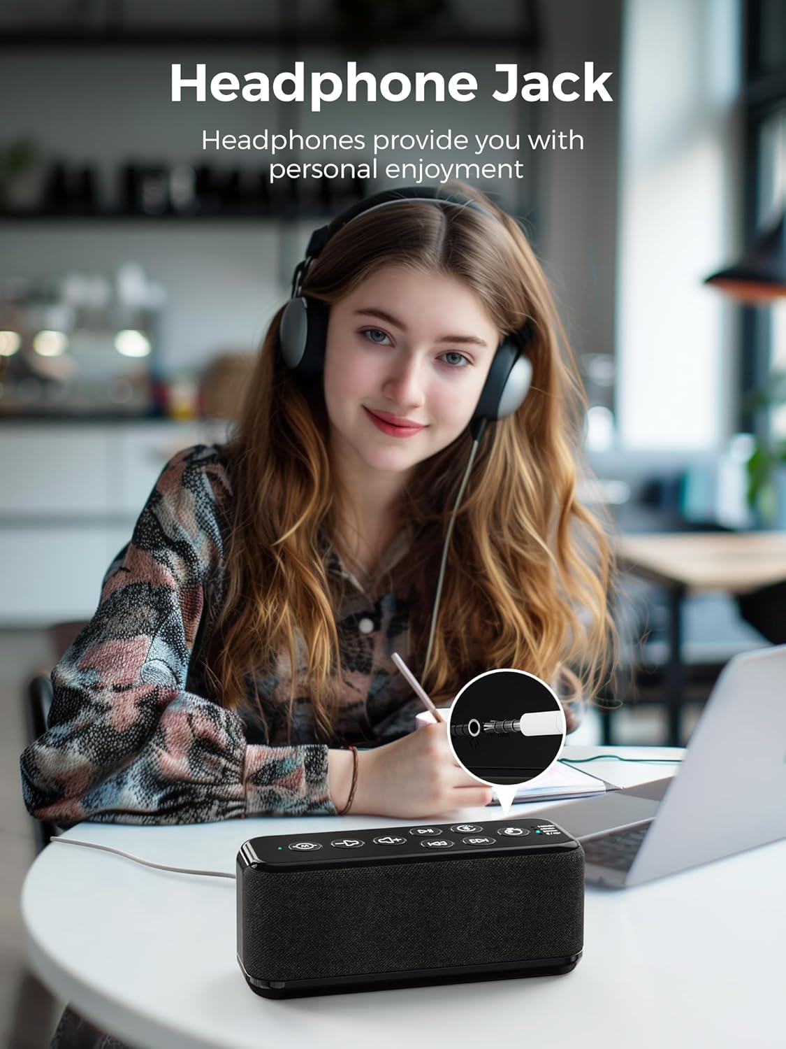 [Headphone Jack & Memory Function for Private Listening] Equipped with a headphone jack, this noise machine for office privacy allows you to enjoy soothing sounds privately without disturbing others. The memory function saves your last sound and volume settings, so you don’t have to readjust each time. Perfect for travel, work, or home use, this sound machine ensures convenience and tranquility.