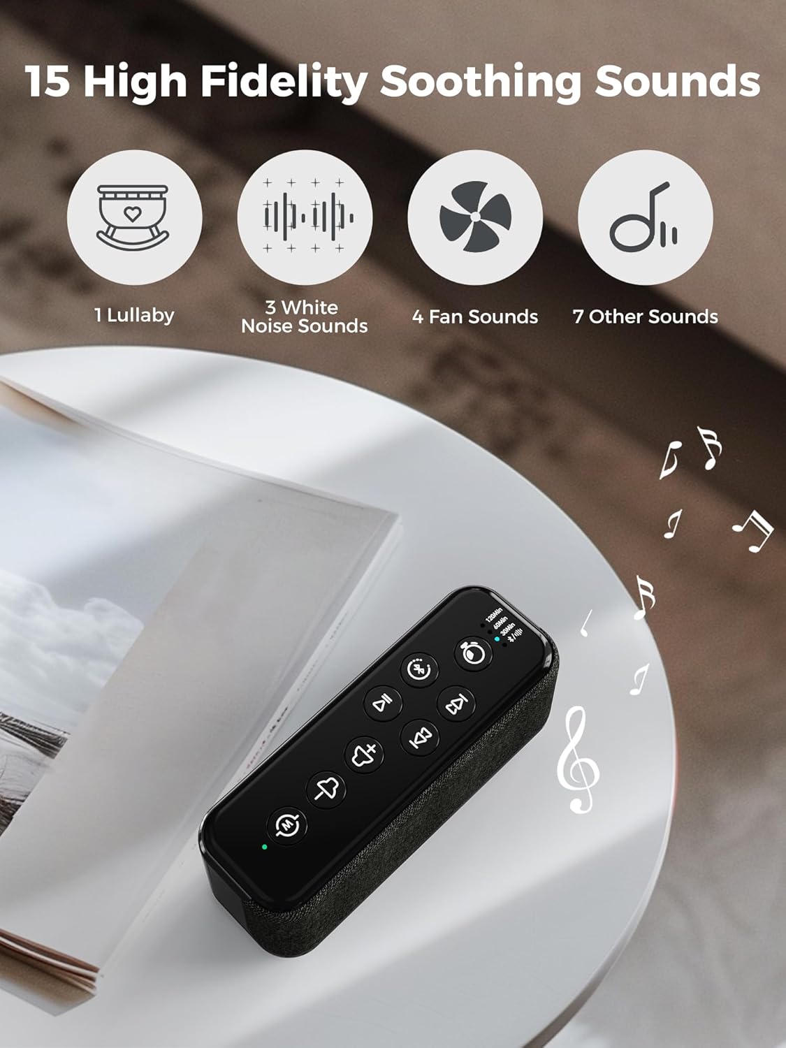 [15 Soothing Sounds for Deep Relaxation] Choose from 15 high-quality sounds, including white noise, fan sounds, nature sounds like ocean waves and rain, and calming lullabies. This Hi-Fi sound machine delivers clear, rich audio to create an immersive experience, helping even the most restless sleepers achieve deep, restful sleep. Perfect for adults, babies, and office use.