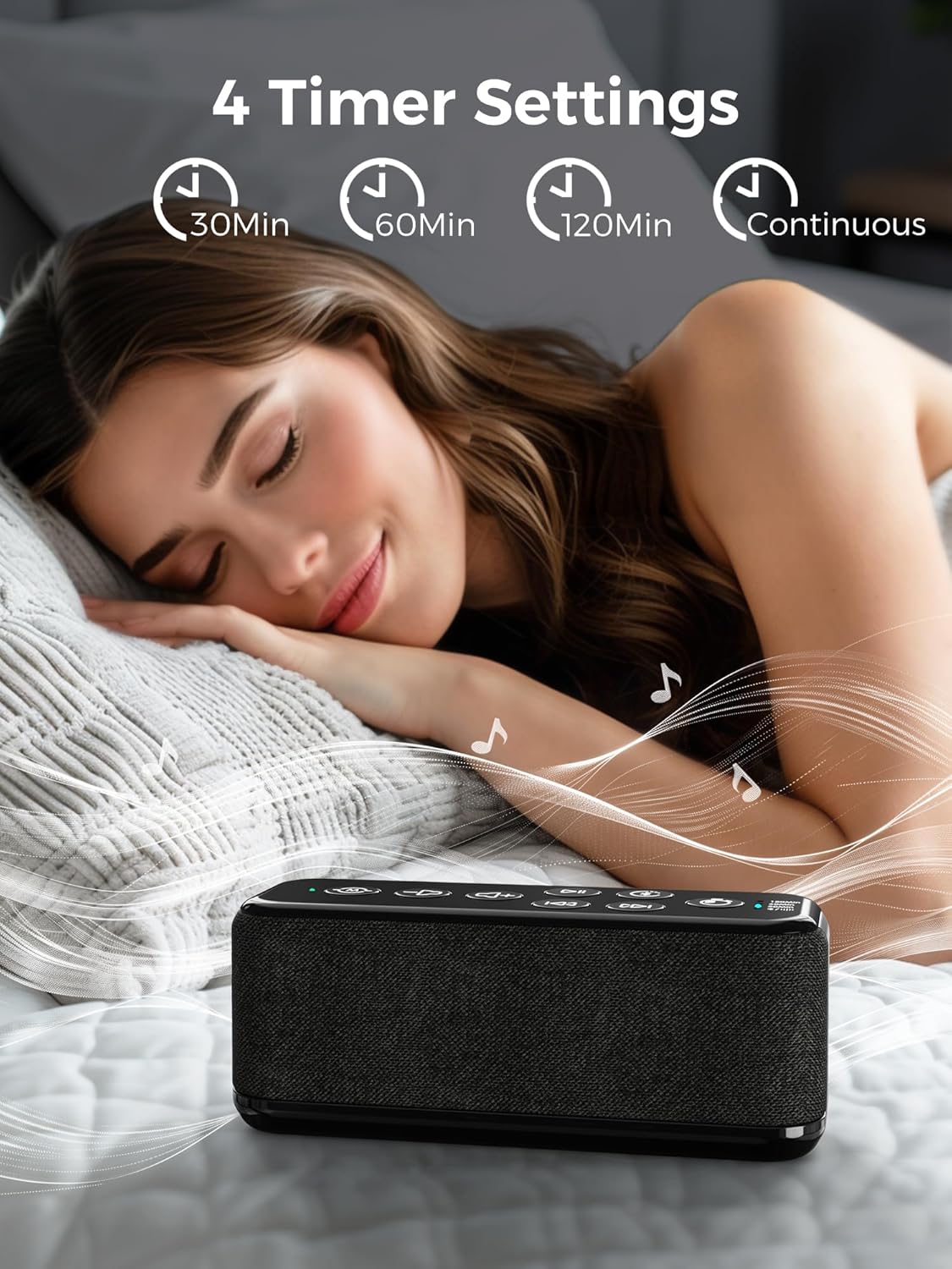 [4 Timer Options & 8 Volume Levels for Customization] This noise machine for sleeping adults offers four timer settings (30, 60, 120 minutes, or continuous play) and eight volume levels. Whether you need whisper-quiet background noise or a louder setting, this portable sound machine adapts to your preferences, ensuring a comfortable and personalized sleep or relaxation experience.