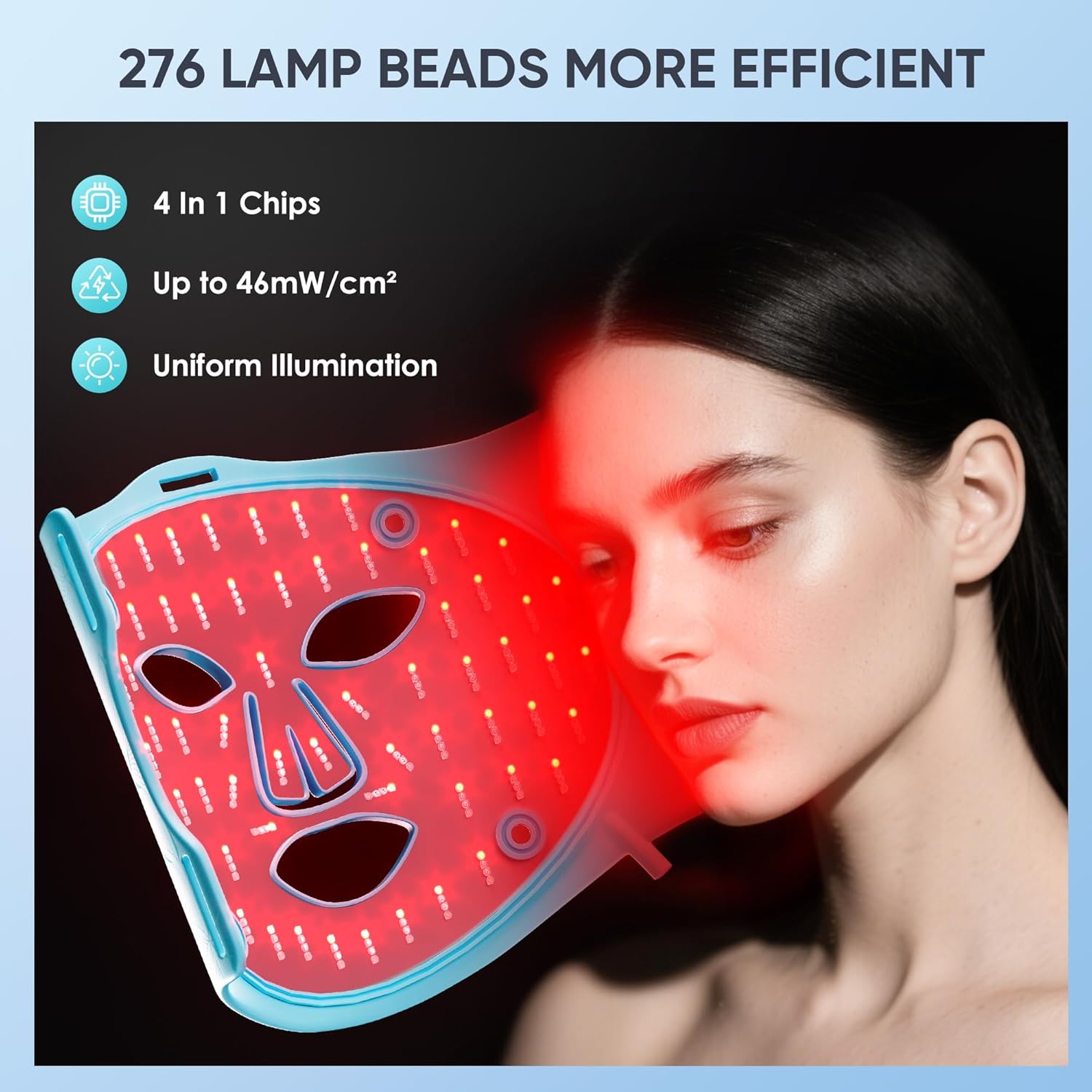 Red Light Therapy for Face: 276 LED Face Mask Light Therapy, LED Infrared Facial Mask Skincare Device, Beauty Care Tool for Women At Home, Red Light Therapy Mask