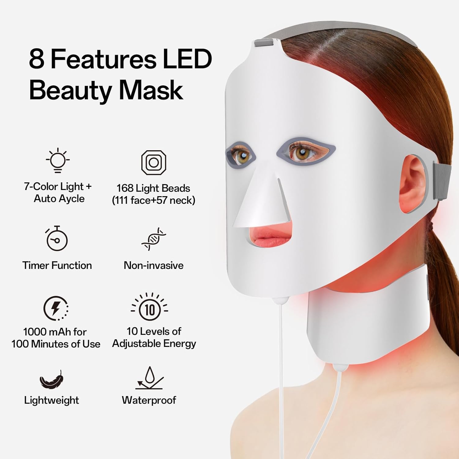 Red Light Therapy for Face and Neck – 7 Colors Red Light Mask, Facial Skin Care Device, Portable, Rechargeable and Ergonomic Design for Home