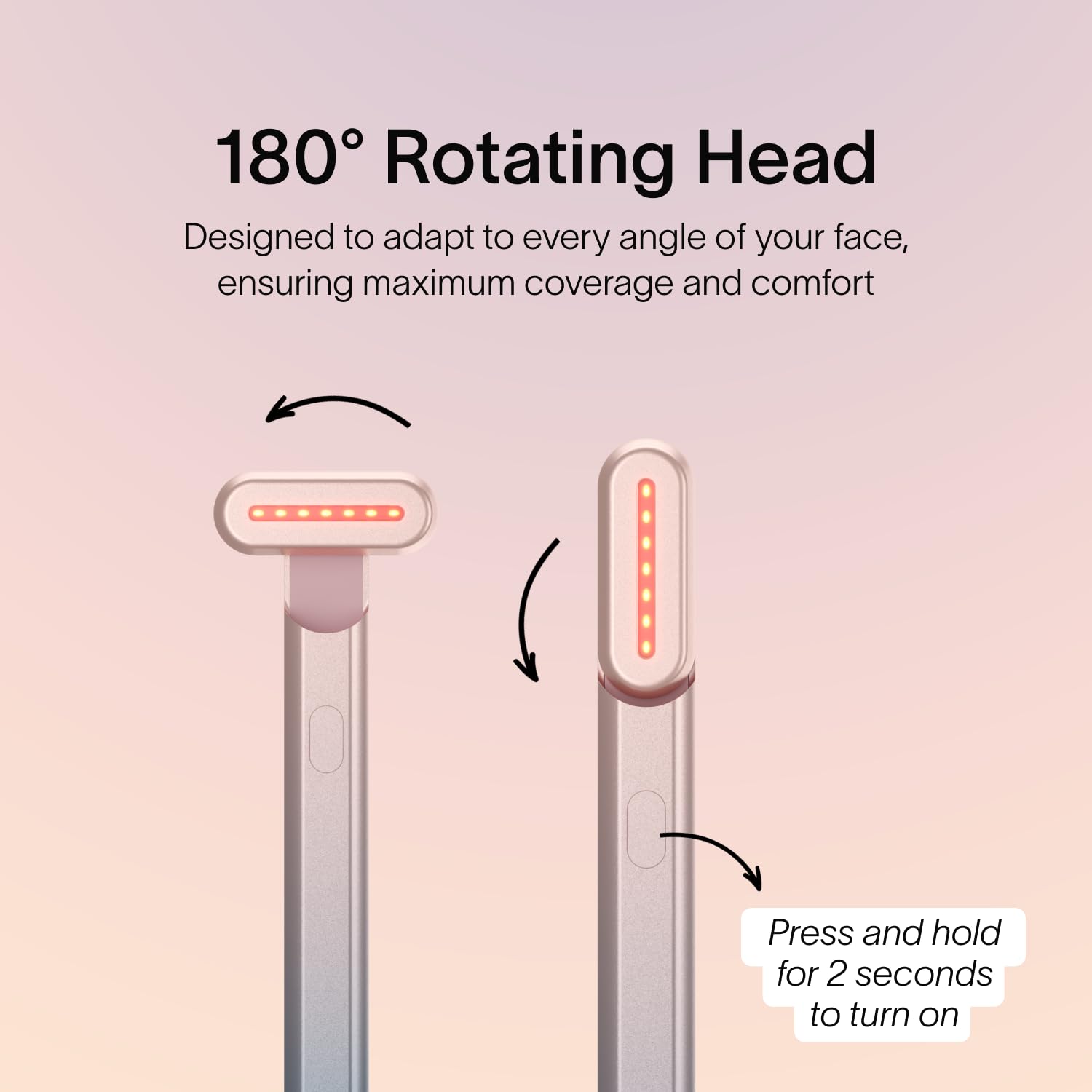 Contour-Friendly Rotating Head: 180° rotating design effortlessly fits facial contours, allowing targeted treatment of forehead, under eyes, cheeks, jawline, upper lip, and neck for maximum results.