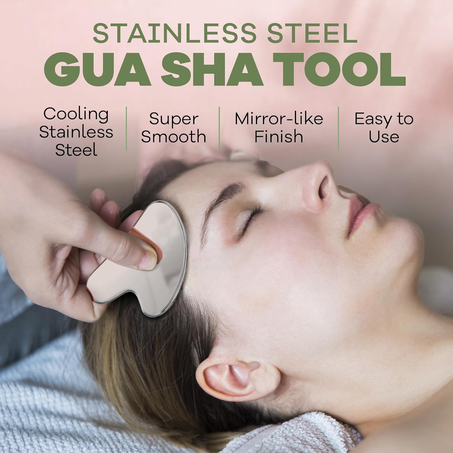 MIRROR-LIKE LUSTER – Upgrade your traditional jade or rose quartz Gua Sha stone. This polished 100% stainless steel metal gua sha tool is unbreakable if accidentally dropped and slides smoothly on skin without scratching or catching. Our fascia tool is easy to clean and maintain with the included microfiber cloth.