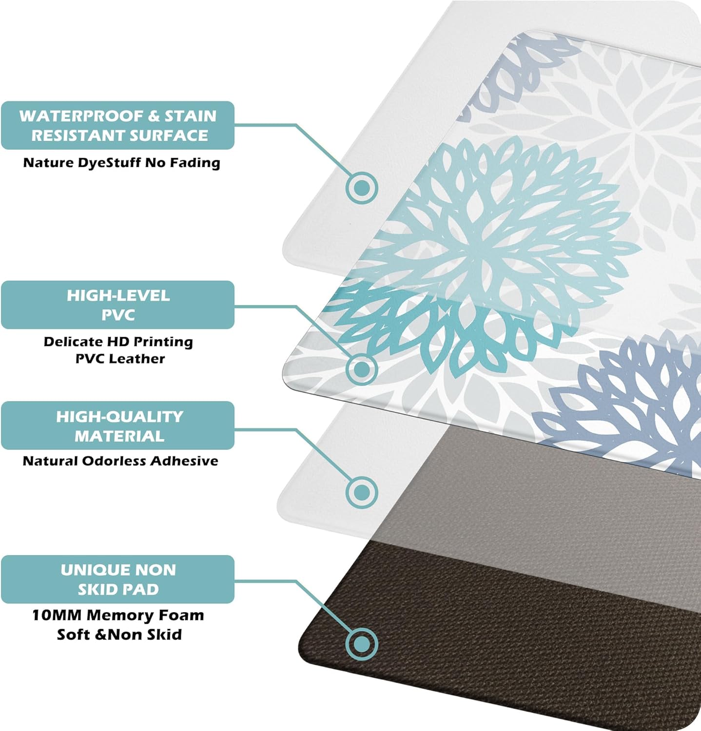 Teal Kitchen Mats Set of 2 Cushioned Anti Fatigue Kitchen Rugs Non Slip Waterproof Runner Memory Foam Kitchen Floor Mat Comfort Standing Mat for Sink,Office,Laundry