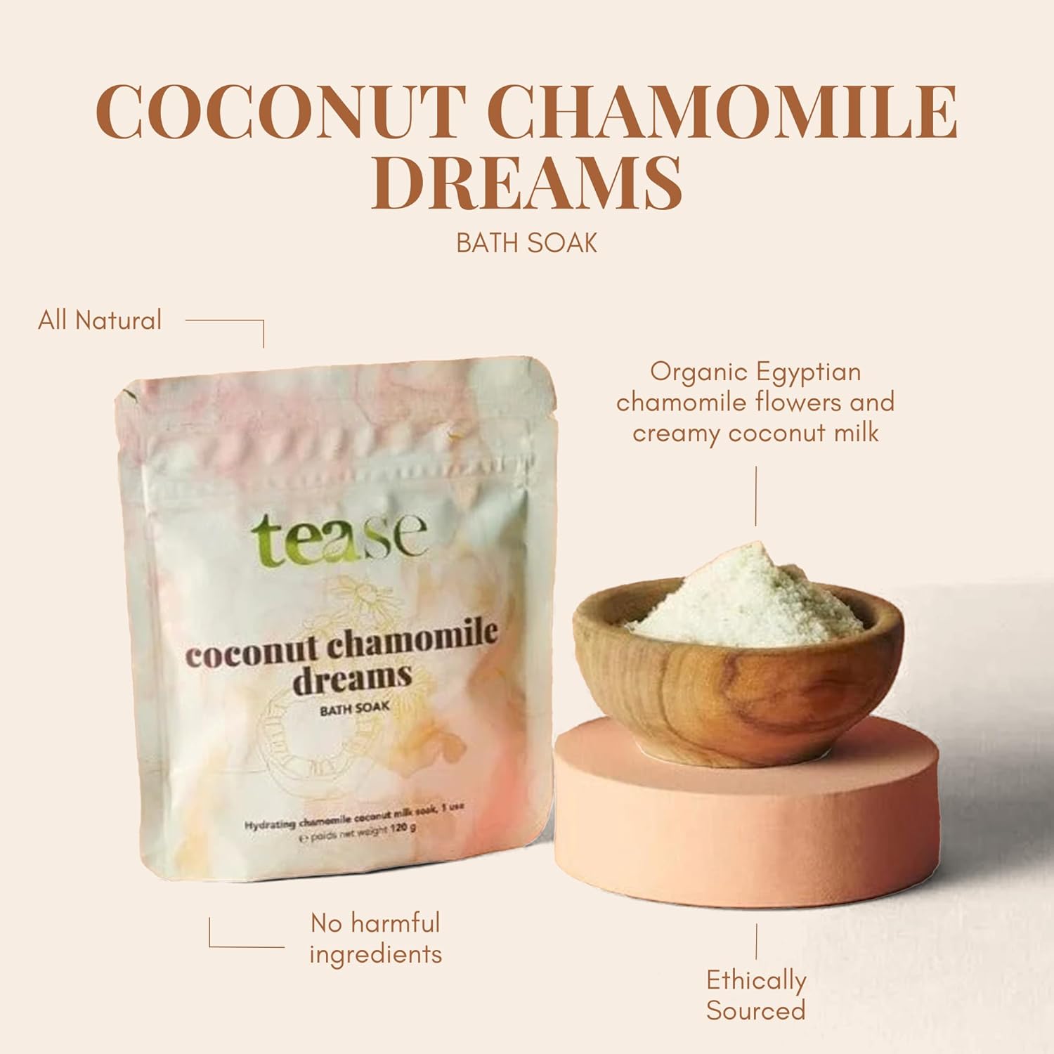 Blends with Benefits: Unlike your ordinary bath foam, Tease Tea Coconut Chamomile Dreams Bath Soak is designed with your goals. Not only does it offer a regular bath wash, but it also has a mix of health-beneficial ingredients without harmful chemicals.