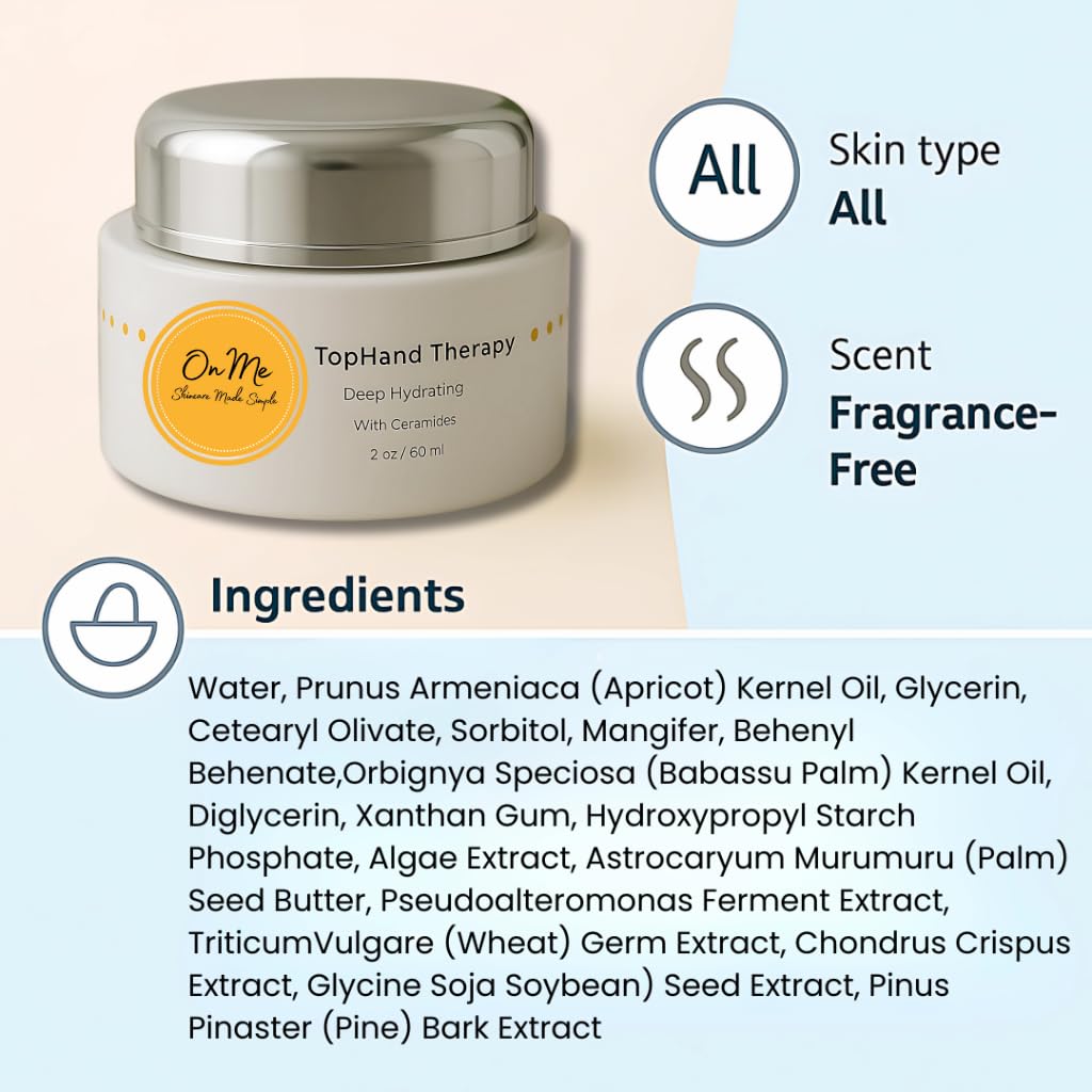 TopHand Therapy Anti-Aging Hand Cream with Ceramides & Botanical Extracts – Fast Absorbing, Non-Greasy Moisturizer – Restores Youthful, Soft Hands – 2oz Jar