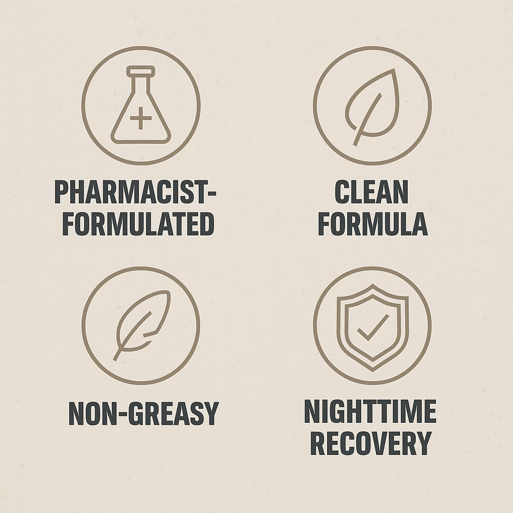 𝐂𝐋𝐄𝐀𝐍 𝐅𝐎𝐑𝐌𝐔𝐋𝐀 𝐀𝐍𝐃 𝐍𝐈𝐆𝐇𝐓𝐓𝐈𝐌𝐄 𝐑𝐄𝐂𝐎𝐕𝐄𝐑𝐘: Fragrance-free, paraben-free, and cruelty-free, this gentle formula is safe for all skin types. Packaged in a 2oz jar, it’s great for travel or home use. Apply before bed and wake up to noticeably softer, hydrated, and healthier-looking hands.