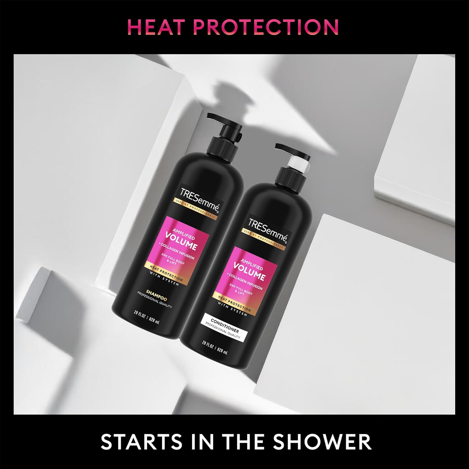 LIFT & THERMAL PROTECTANT: Our Amplified Volume system, with Collagen Infusion, revives fine hair for instant body and bounce—plus heat protection that starts in the shower.