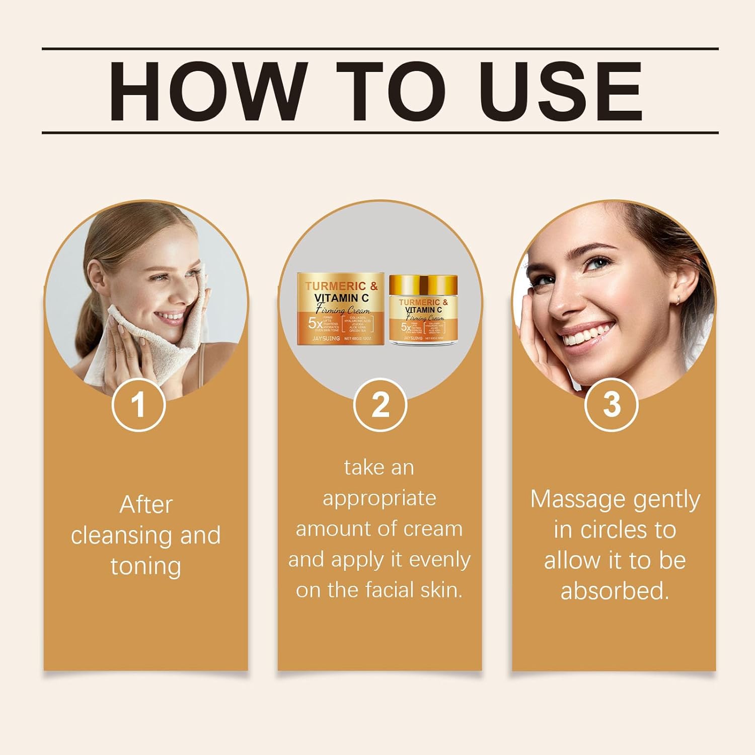 Natural Formula: Turmeric facial cream is made of turmeric extract, collagen, hyaluronic acid, aloe and other natural ingredients, which can enhance skin elasticity, reduce wrinkles and fine lines, and provide youth and luster