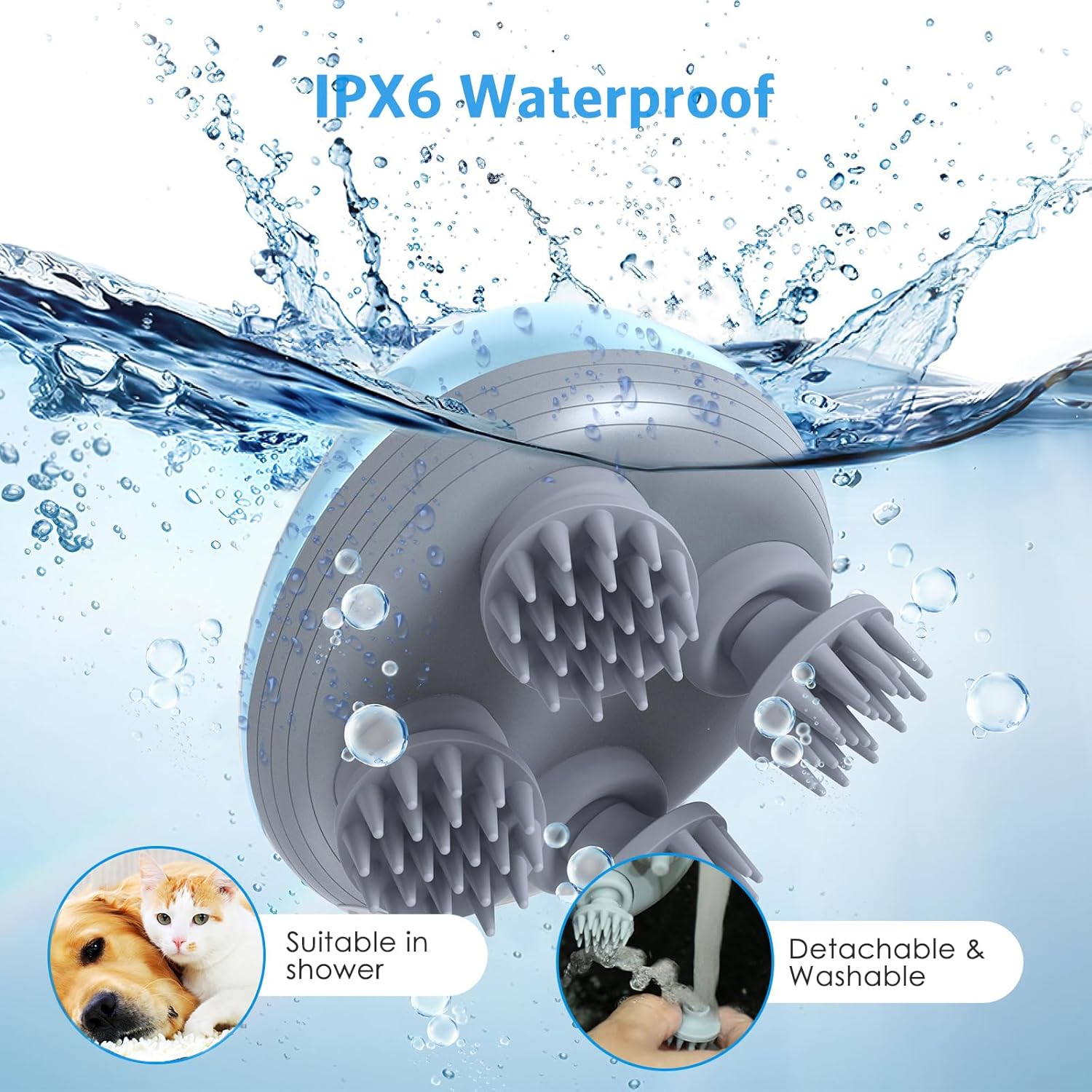 【IPX6 Waterproof】Handheld massager can be used not only at ordinary times, but also in the shower, enhance the cleanliness of the shower, help to remove dirt. The four massage heads are removable for easy cleaning, and the soft food-grade silicone head prevents hair pulling and tangling and won’t harm you