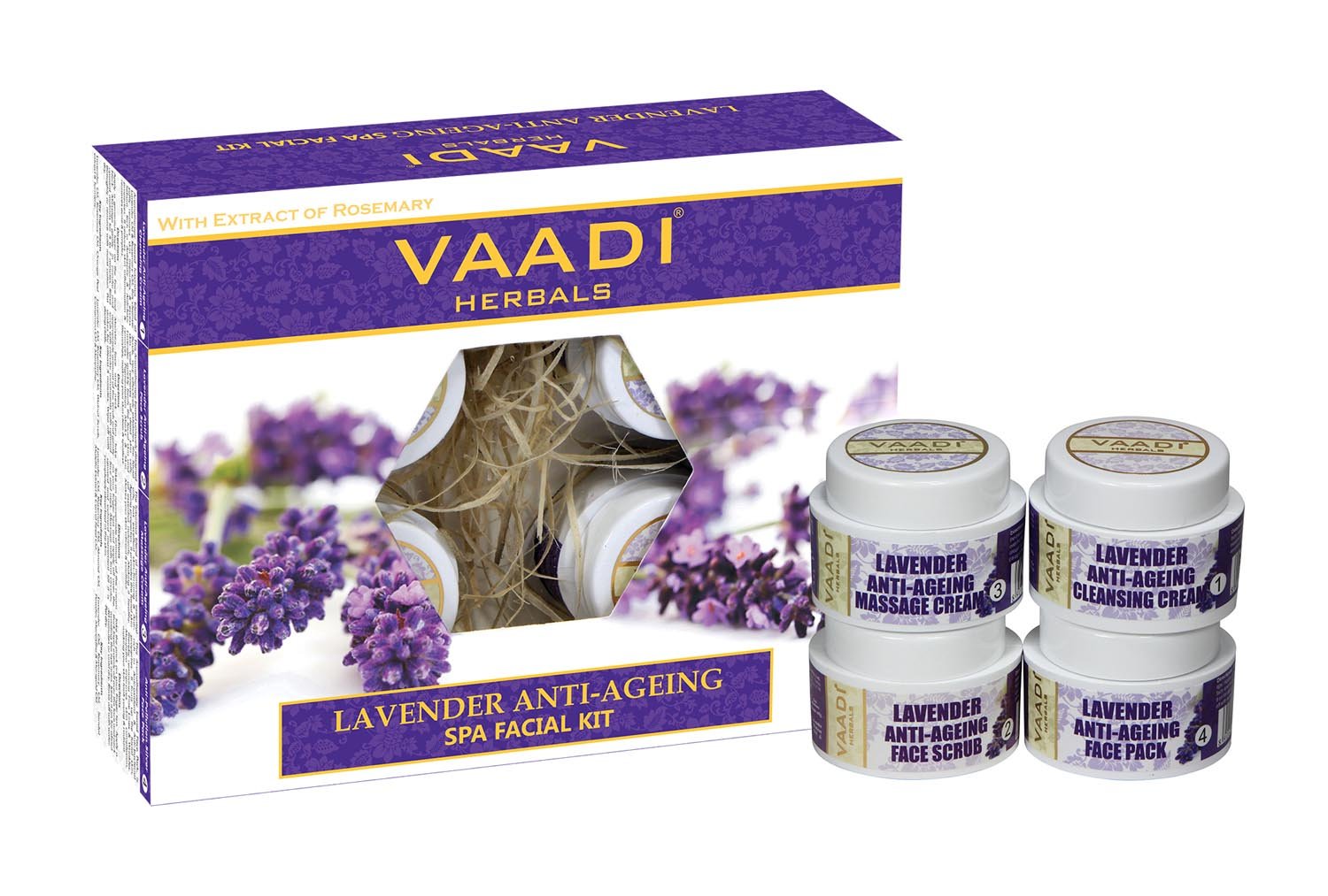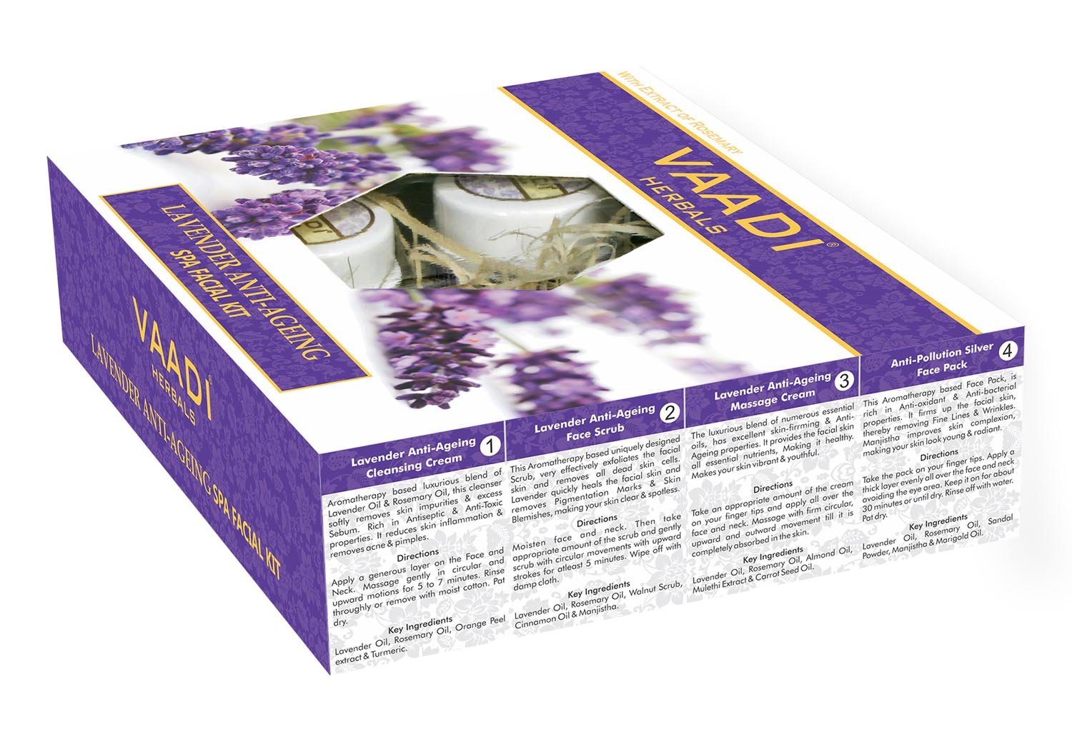 ★ KIT INCLUDES: ★ Lavender Rosemary Cleansing Cream ★ Lavender Rosemary Face Scrub ★ Lavender Rosemary Massage Cream ★ Lavender Rosemary Face Pack