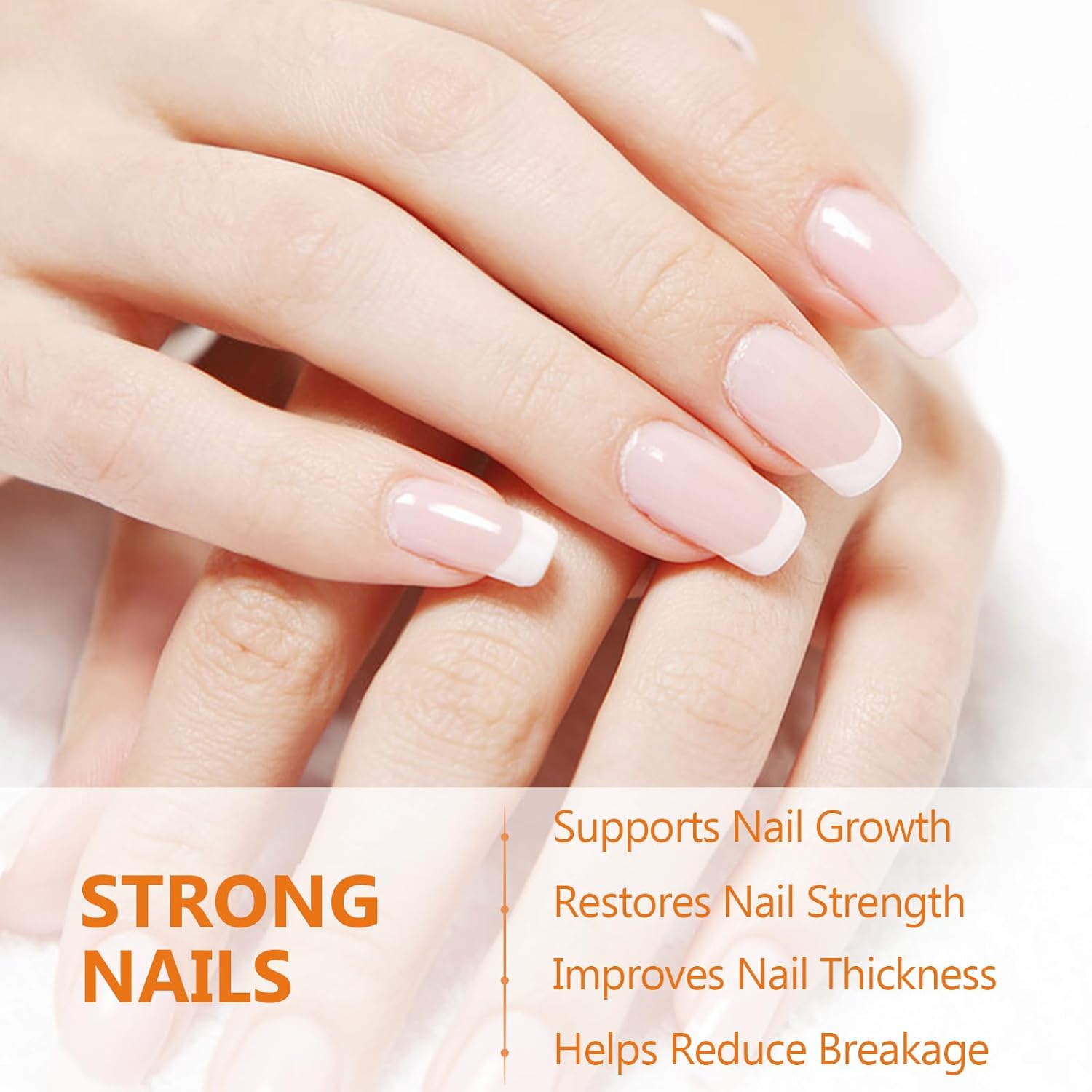 Support Skin, Nail and Hair Health: Each serving of biotin supplements provides 2500mcg biotin to nourish your natural beauty from within. This essential nutrient helps improve hair thickness, reduce brittle nails, and enhance skin’s youthful glow