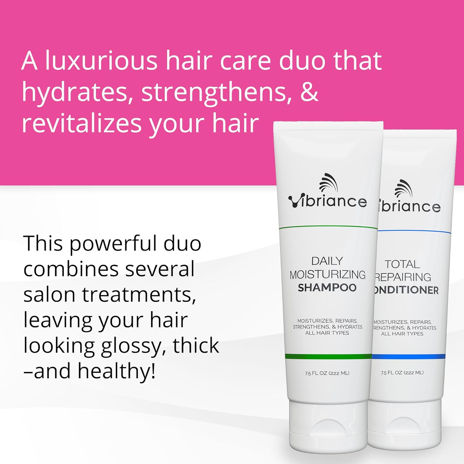 Strengthens, hydrates, & repairs – Carefully formulated to our highest standards, Vibriance Moisturizing Shampoo and Total Repairing Conditioner transform your hair with every wash, providing deep moisturization while improving hair elasticity and texture, reducing frizz and preventing split ends.