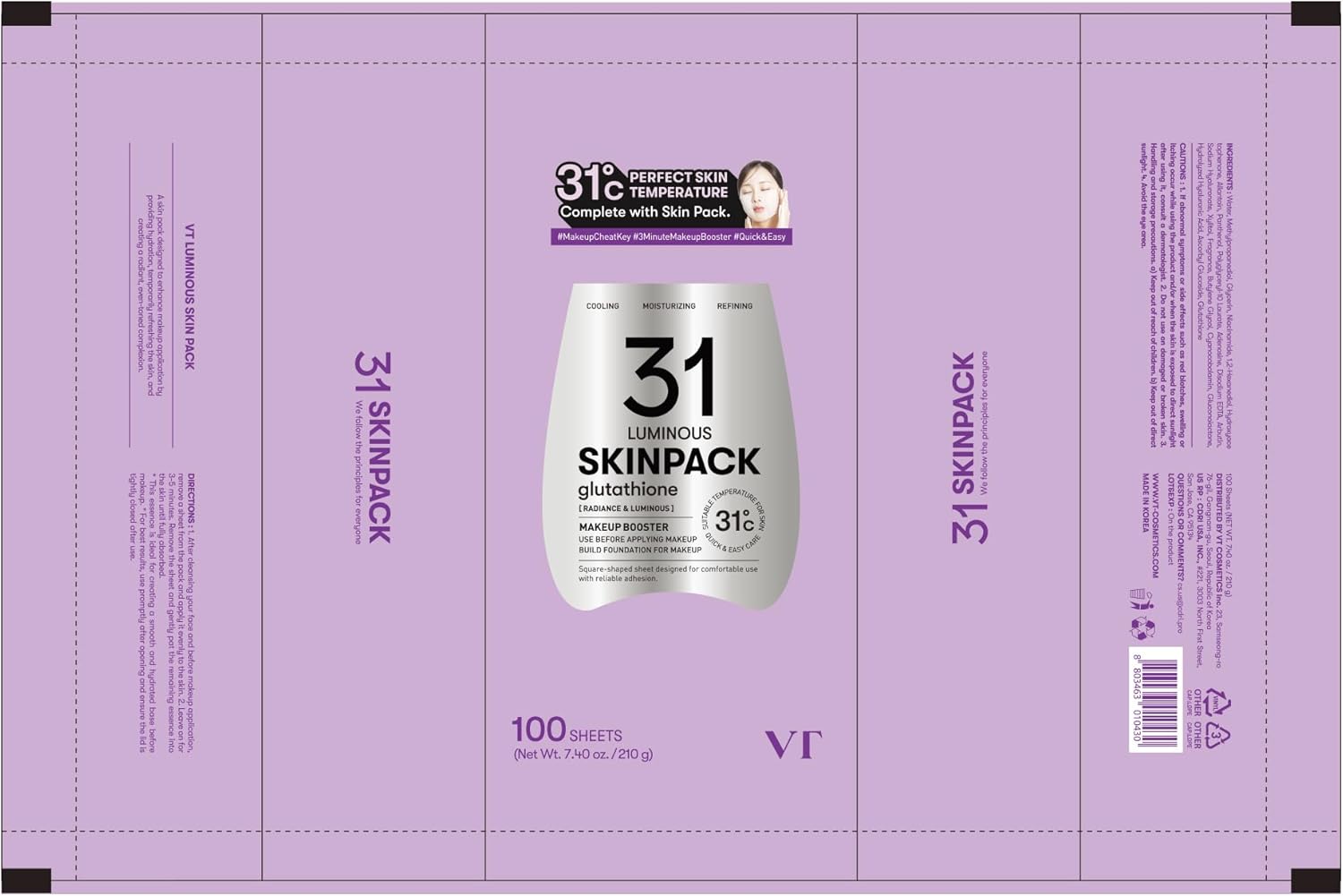 VT COSMETICS Luminous Skin Pack (100 Sheets), Quick & Easy Makeup Booster, Instant Cooling & Hydrating, Glowing with Glutathione, Gently Exfoliating, Korean Skincare
