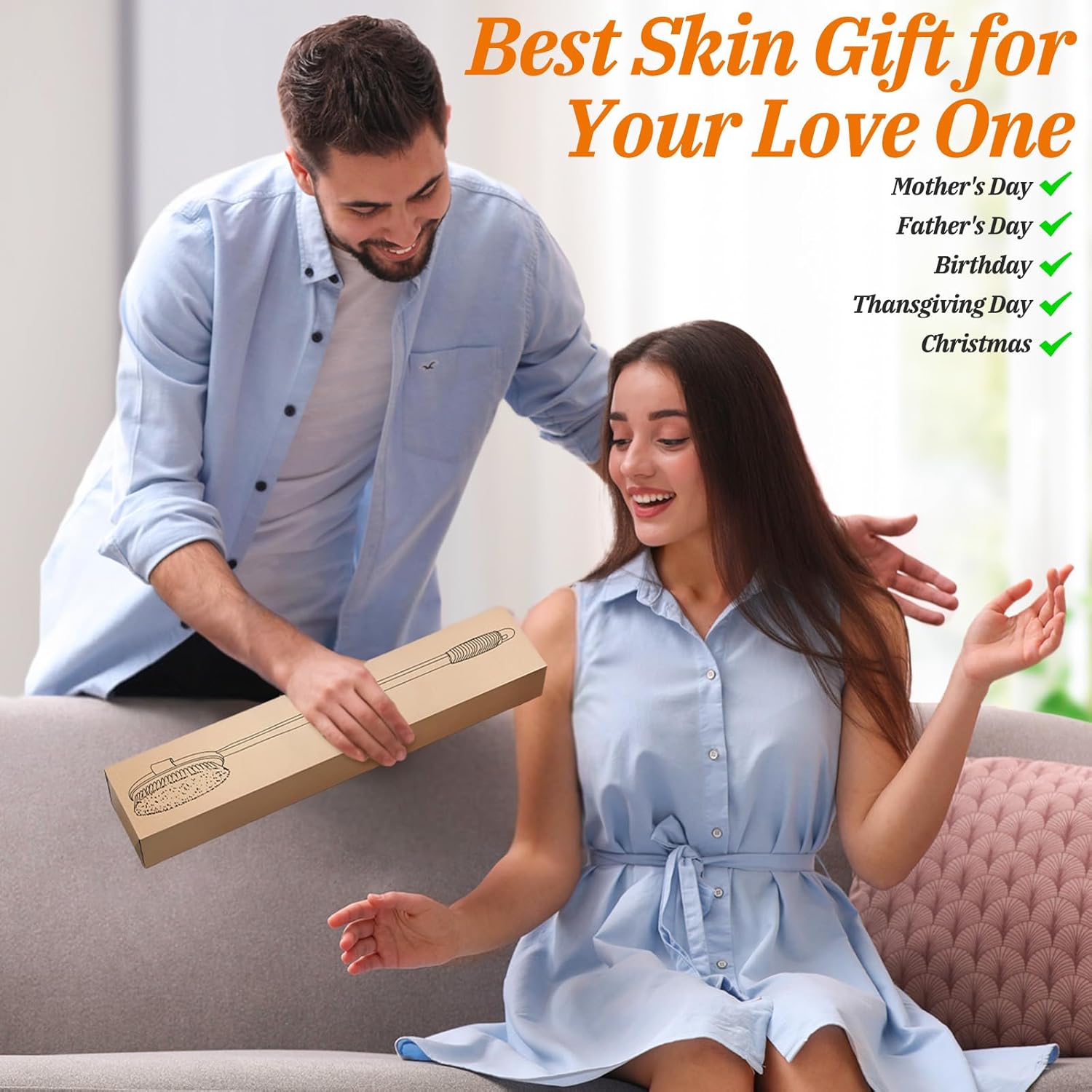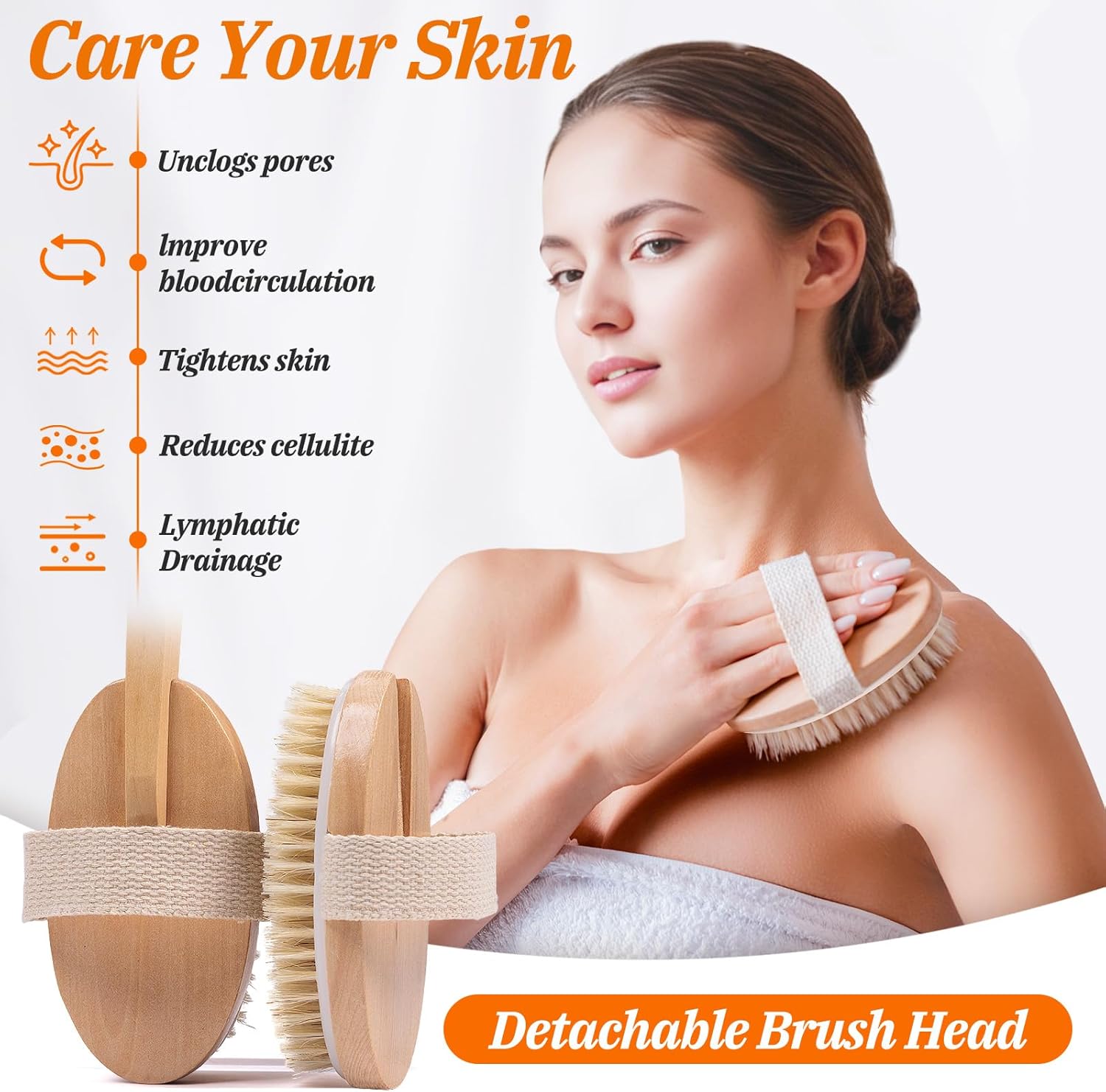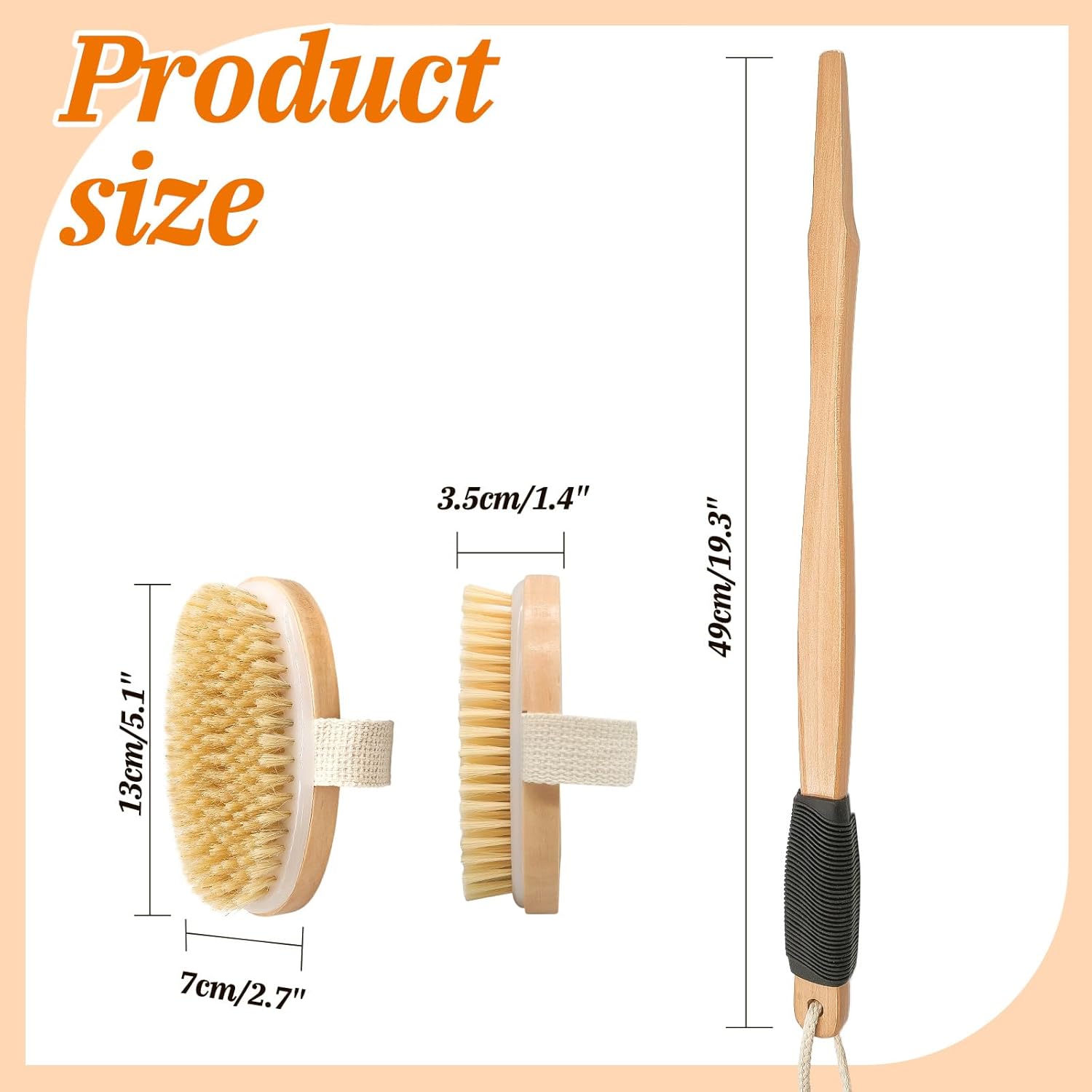 Ergonomic Beechwood Handle: Our 20.6-inch dry body brush with handle provides an ergonomic grip, facilitating an effective lymphatic massage. This premium dry brushing body brush set is perfect for hard-to-reach areas like the back.