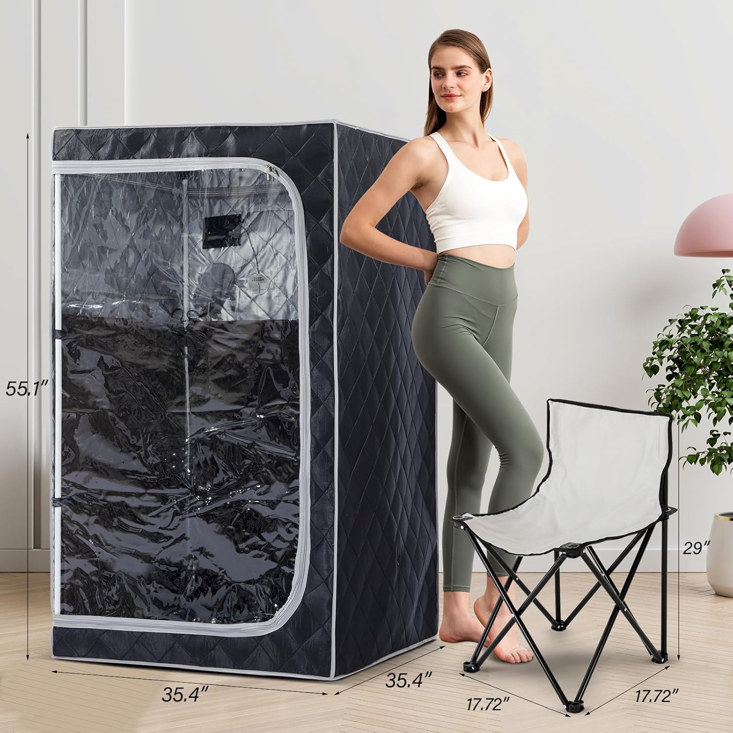 Comfortable & Spacious:Set up size: L35.4″ x W35.4″ x H55.1″, providing ample space for 1 people to enjoy a relaxing sauna experience at home. Includes sauna tent, 1 foldable chair, LED light, and floor mat for extra comfort